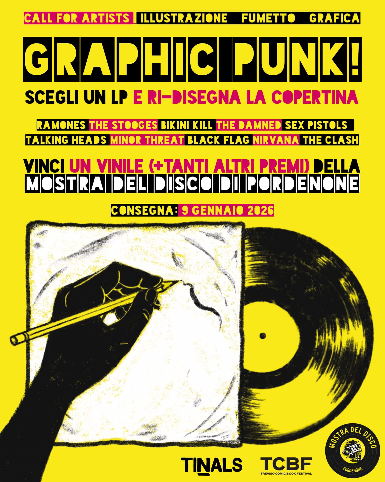 L’opera vincitrice sarà annunciata lunedì 12 gennaio 2026 tramite mail a tutti i partecipanti al contest e sui canali social instagram di Mostra del Disco, Tinals e Treviso Comic Book Festival.